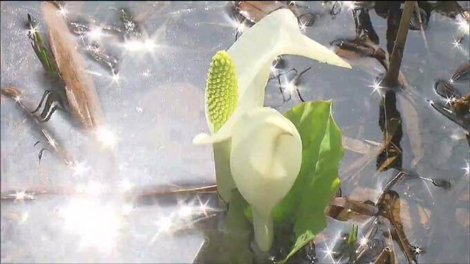 宮城県加美町の湿原ではミズバショウが見ごろを迎え、山間に本格的な春の訪れを告げています。