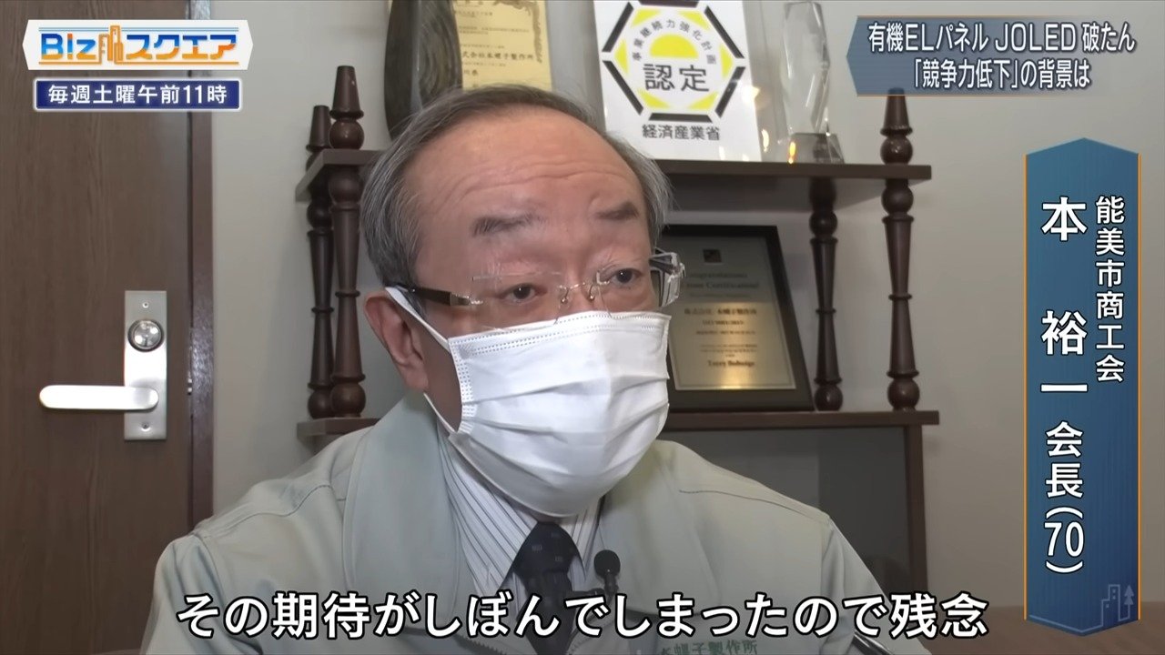 JOLEDの主力工場がある石川県能美市では、突然の経営破綻のニュースに地元からは戸惑いの声が上がった。精密部品加工業を経営し、商工会の会長を務める本裕一氏は地元経済への影響を心配している。