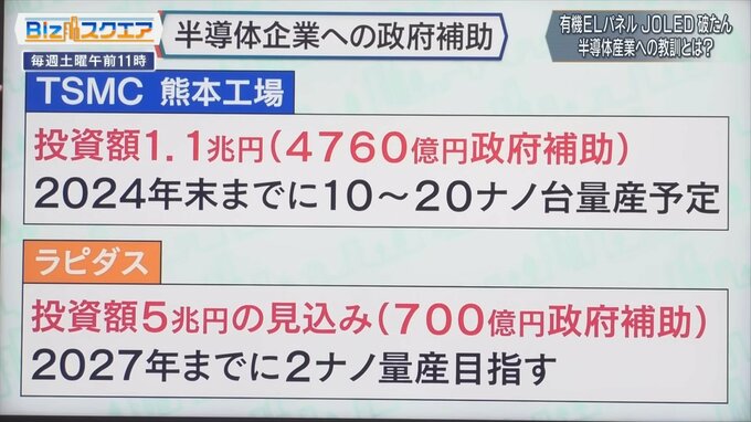 今、日本は産業の頭脳と言われる半導体に大規模投資をしている。政府はTSMCに4760億円もの補助をする。JOLEDの公的支援は1300億なので、全然額が違う。最先端の新しいロジック半導体企業、ラピダスにも支援していく。