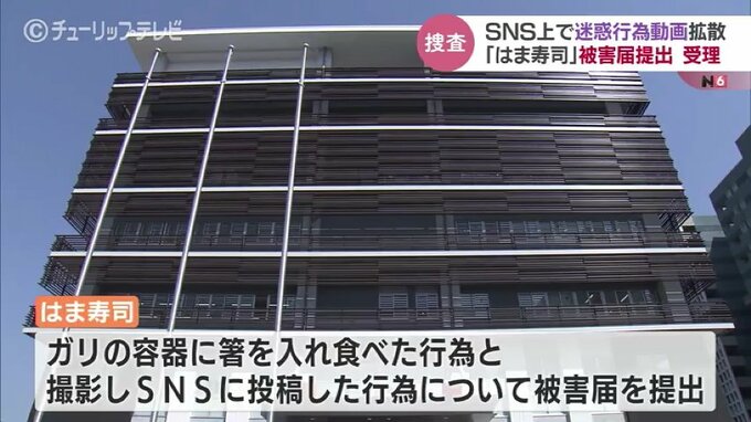 これについて「はま寿司」は、ガリの容器に箸を入れ食べた行為と、撮影しSNSに投稿した行為について、5日、富山中央警察署に被害届を提出しました。