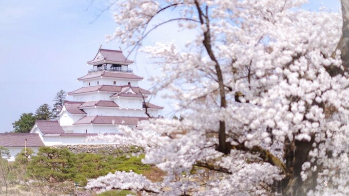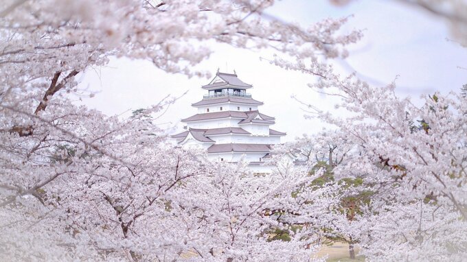 サクラに囲まれた鶴ヶ城の姿は、この季節しか見られない絶景です。