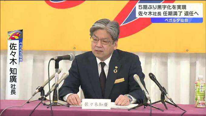 サッカーJ2リーグのベガルタ仙台は5日、取締役会を開き佐々木知廣社長が任期満了に伴い退任することが決まりました。 ベガルタ仙台 佐々木知廣社長:「4月25日株主総会を持って佐々木が退任し、新たに板橋秀樹氏…