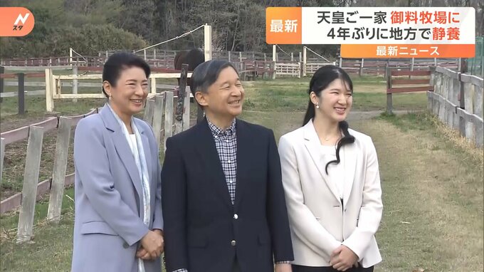 天皇ご一家が、きょうから、およそ4年ぶりに地方での静養に入られました。きょうから栃木県高根沢町の御料牧場で静養に入られた両陛下と愛子さま。牧場内を散策された際にはちょっとしたハプニングがー天皇陛下「…