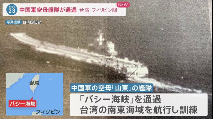 台湾国防部は中国軍の空母「山東」を中心とする艦隊が台湾・フィリピン間のバシー海峡を通過したと発表しました。中米歴訪を終えた蔡英文総統が経由地のアメリカを訪れていることに反発を示したものとみられます。…