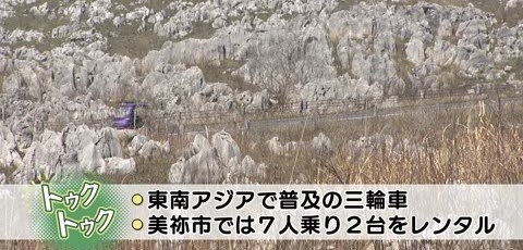 タイなど、東南アジアでタクシーとして普及している三輪の車で、山口県美祢市では去年から7人乗り2台がレンタルされています。