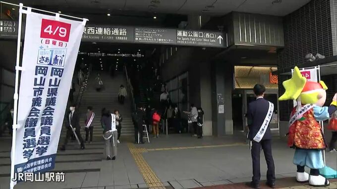 今月(4月)9日に迫った岡山県議会議員選挙の投票日に向けて、投票を呼びかける街頭啓発が岡山駅前で行われました。