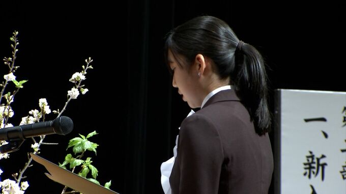 (新入生代表・岡崎涼佳さん)「知識を身につけることはもちろんですが、成人として責任感ある行動を心がけ、卒業後は即戦力となれる人物へと成長していきたいと考えています」