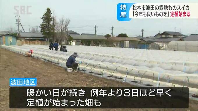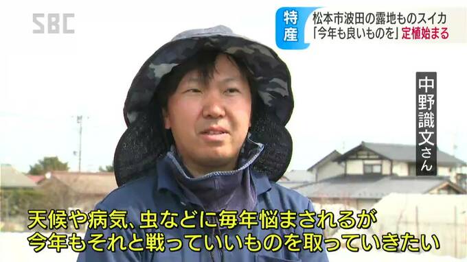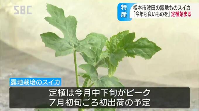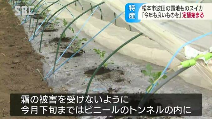 松本市で、露地栽培のスイカの定植作業が始まりました。