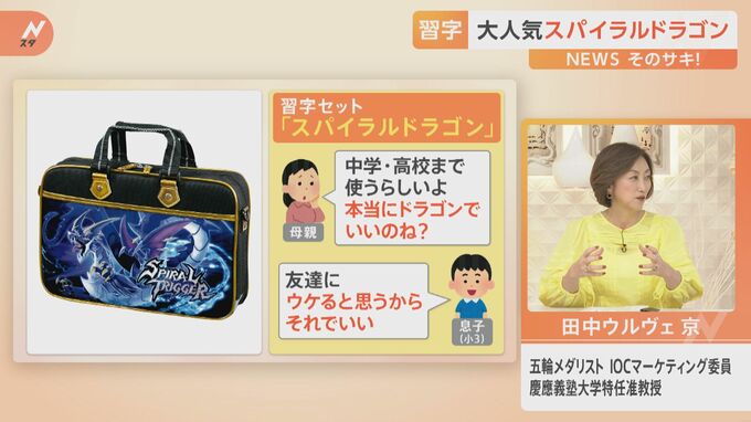子どもに対してお母さんは「中学・高校まで使うらしいよ。本当にドラゴンでいいのね?」と念を押しました。息子(小3)は「友達にウケると思うからそれでいい」と、小学校3年生のときには人気のキャラクターものを持っているとウケるけど、本当に中学校入ってから大丈夫?持ち続けるのね?という親子のやり取りがありました。