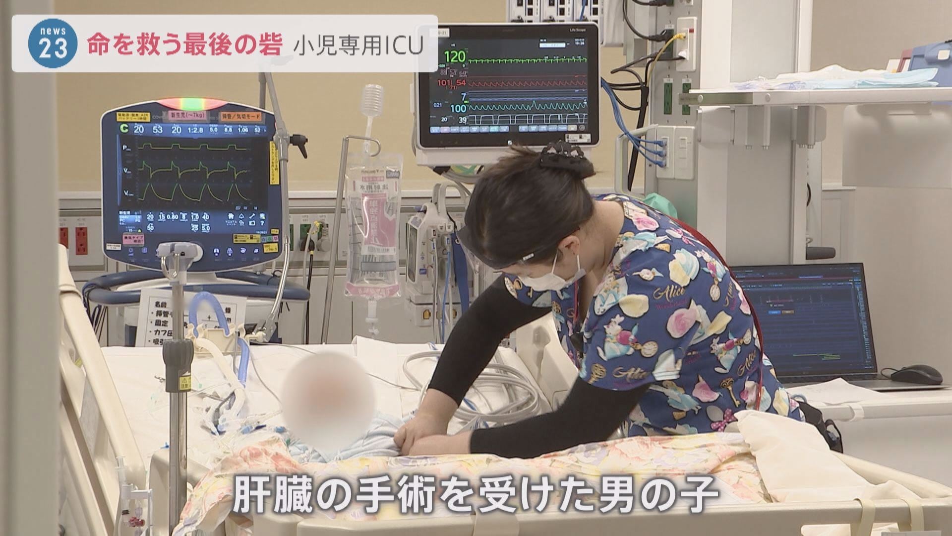 この病院の小児専用ICUでは、医師7人と看護師17人が365日、24時間体制で治療に当たっています。小児科と集中治療の専門知識が求められるため、全国的に数が限られていて常に満床に近い状態です。