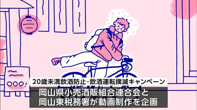 動画は、きょう(7日)から全国で行われている飲酒運転撲滅などを目指すキャンペーンの一環で公開されたもので、岡山県の小売酒販組合連合会などが企画しました。