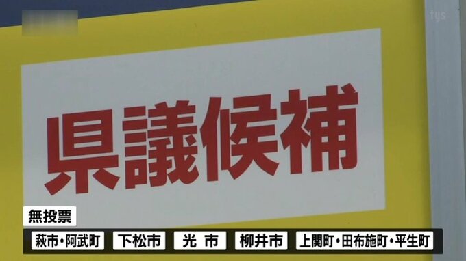 萩市・阿武町、下松市、光市、柳井市、上関町・田布施町・平生町の5つの選挙区では、無投票となり、8人が当選しました。残る39議席を巡り、10の選挙区で激しい選挙戦が展開されています。