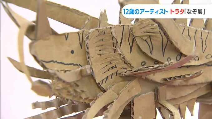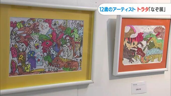 倉敷市のギャラリーで開かれている「なぞ展」には、12歳のトラタくんが、小学1年から6年までの間に手がけた作品が並びます。