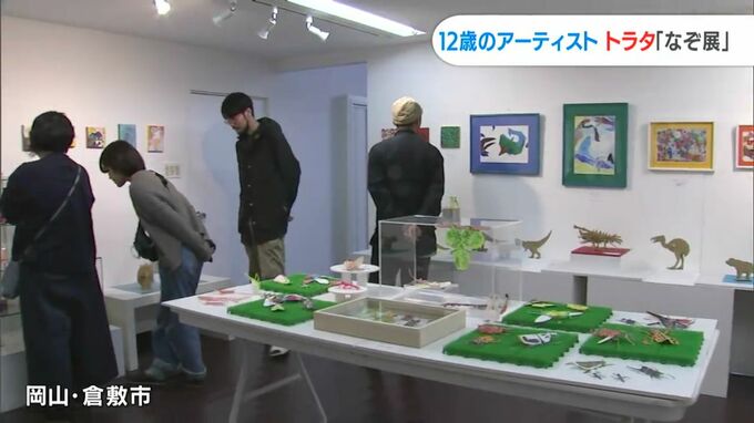 来週から中学校に通う12歳のアーティスト・トラタくんの作品を集めた展示会が、岡山県倉敷市で開かれています。