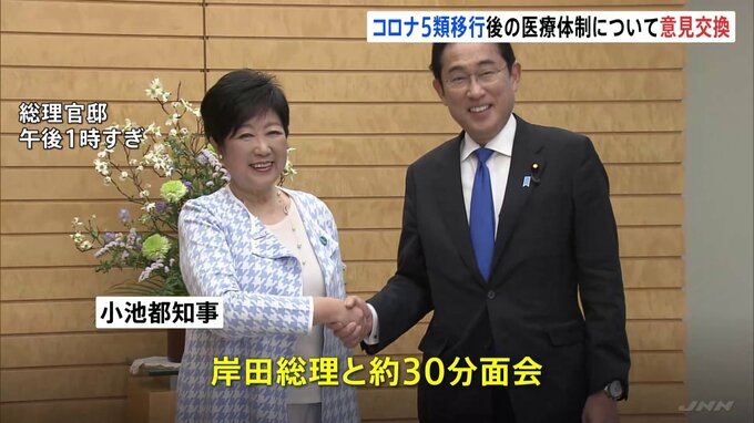岸田総理は官邸で東京都の小池知事と面会し、新型コロナが感染症法上の5類に移行する来月8日以降の医療体制のあり方などについて意見を交わしました。小池都知事は岸田総理とおよそ30分面会しました。5月8日以降の…