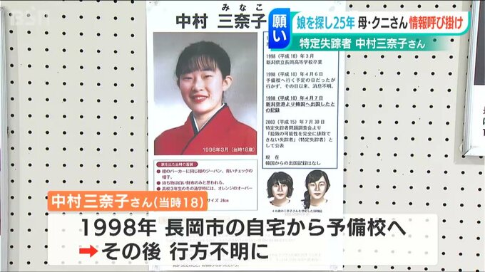「25年前のきょうこの日、中村三奈子さんが新潟空港から韓国へ渡った記録を最後に行方が分からくなっています」