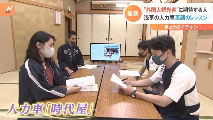 東京・浅草で20年以上、人力車を続ける「時代屋」。行われていたのは英会話のレッスンです。