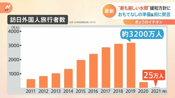 日本に来る外国人観光客は、2019年には過去最多の約3200万人に。しかし、コロナの影響もあり、2021年はわずか25万人と大きく減少。観光業界にとって大きな打撃となっています。