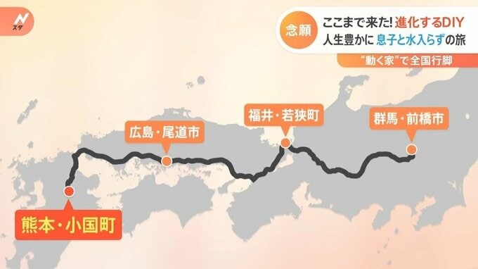 長竹さんが“動く家”で訪れたのは、北海道から鹿児島まで2年半で46都道府県になりました。今年のゴールデンウィークも息子の竜宜さんと小旅行へ出かけました。