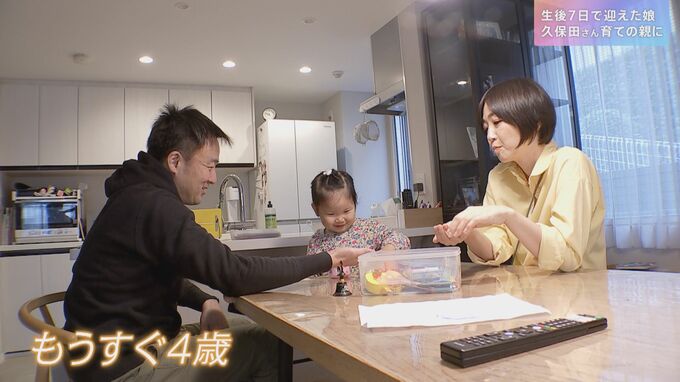 久保田智子さんの長女・はなちゃん(仮名)。38歳で夫・典明さんと結婚し、2人で話し合いを重ね、育ての親として民間の事業者に登録。そして2019年1月、生後7日のはなちゃんを家族に迎えました。