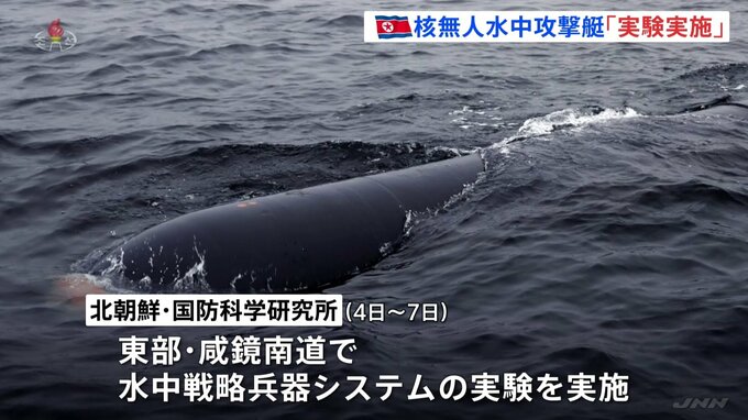 北朝鮮の国営放送は、新型の核無人水中攻撃艇「ヘイル2型」の実験を実施したと伝えました。北朝鮮国営の朝鮮中央テレビはけさの臨時ニュースで、国防科学研究所が今月4日から7日にかけ、東部で水中戦略兵器システ…