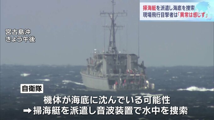 沖縄県宮古島周辺で陸上自衛隊のヘリが消息を絶った事故で、自衛隊は海底の探知ができる掃海艇を現場に派遣し、行方不明の10人の捜索を続けています。記者「宮古島周辺で続いている捜索には海底探査のできる掃海艇…