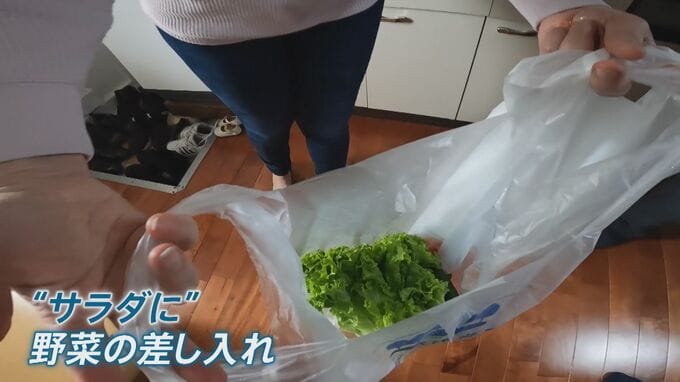 取材中には、近所の人から“サラダに”と野菜の差し入れが。