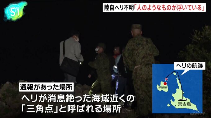 沖縄県宮古島市で陸上自衛隊のヘリコプターが消息を絶った海域の近くできのう夜、「人のようなものが浮いている」と通報がありました。自衛隊などが捜索を続けています。消防によりますと、きのう午後7時40分ごろ…