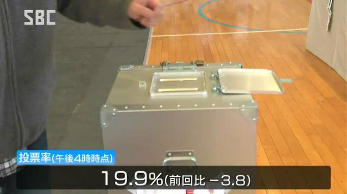 県選挙管理委員会が午後4時までにまとめた投票率は19.9%で、4年前の前回を3.8ポイント下回っています。