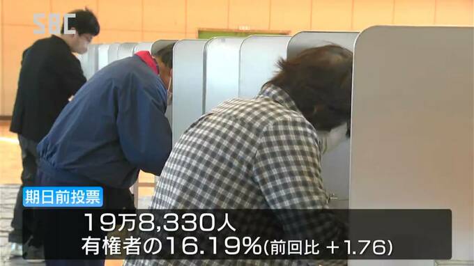 また、期日前投票を済ませた人は19万8330人で、有権者に占める割合は16.19%と、前回を1.7ポイント余り上回りました。