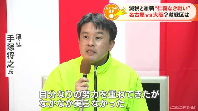 手塚さんは、かつて所属していた減税日本を見限って離党し維新へ。古巣との直接対決となりました。