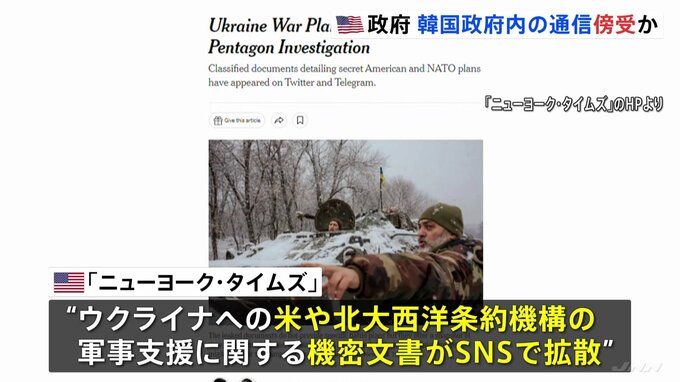 アメリカメディアは、ロシアによるウクライナ侵攻をめぐるアメリカ政府の機密文書がSNS上に流出し、韓国政府高官の通信を傍受したことを示唆する内容も含まれていたと報じました。アメリカの有力紙「ニューヨーク…