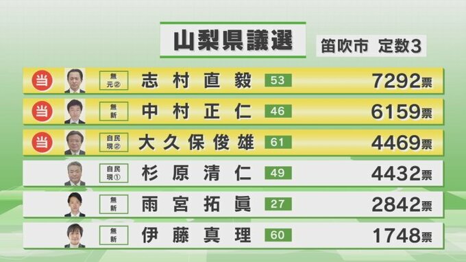 山梨県議会議員選挙は9日の開票の結果、新たな県議会議員がすべて決まりました。