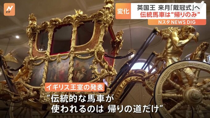来月6日に行われるイギリス・チャールズ国王の戴冠式の詳細が発表されました。行進で使う馬車の種類や経路など、エリザベス女王の時とは変化もあるようです。全体が金色に彩られた豪奢な馬車。「ゴールド・ステー…