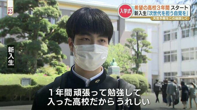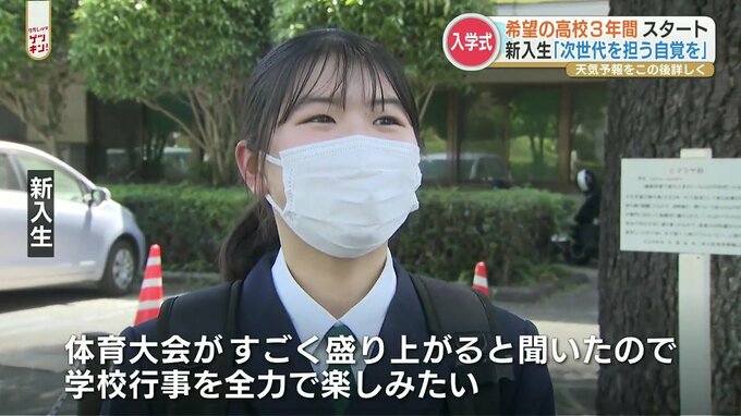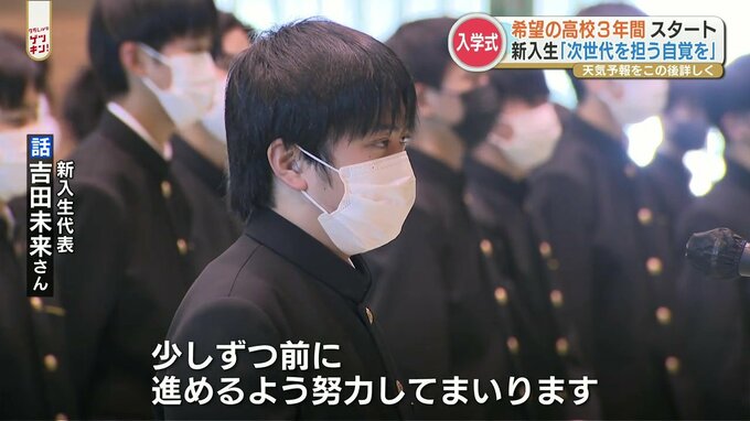 入学式では鶴山幸樹 校長が「3年間で何を成すのかという覚悟を決めてほしい」と激励すると新入生を代表して吉田未来さんが宣誓しました。