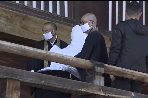 事件から5日経った10日、参拝客に見守られながら、再び本堂に安置されました。