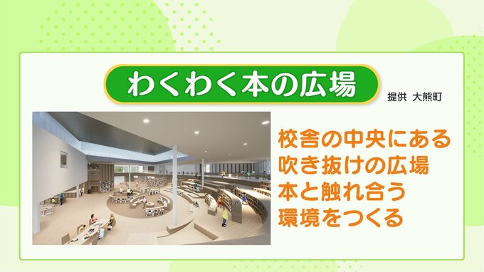 例えば、「わくわく本の広場」は、校舎の中央にある吹き抜けの広場となっていて、子どもたちが気軽に本と触れあうことができる環境をつくっています。