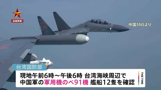 中国軍は、台湾周辺での軍事演習が終了したと発表しました。台湾国防部はきのう過去最多となる、のべ91機の中国軍機を確認したとしています。台湾国防部によりますと、中国軍の演習最終日のきのう、台湾海峡周辺で…