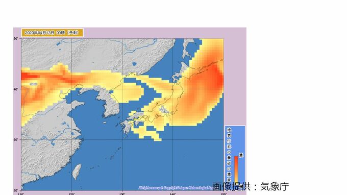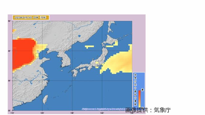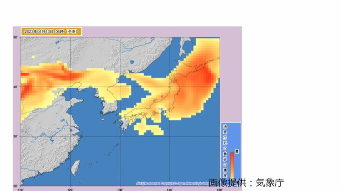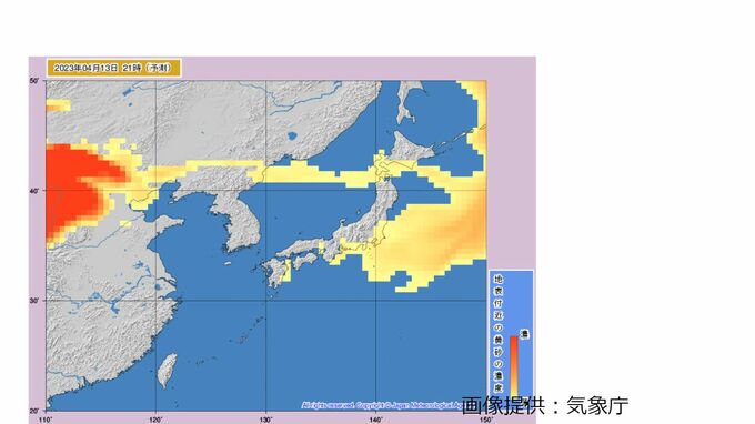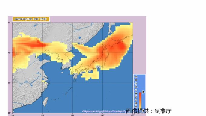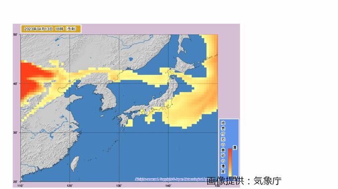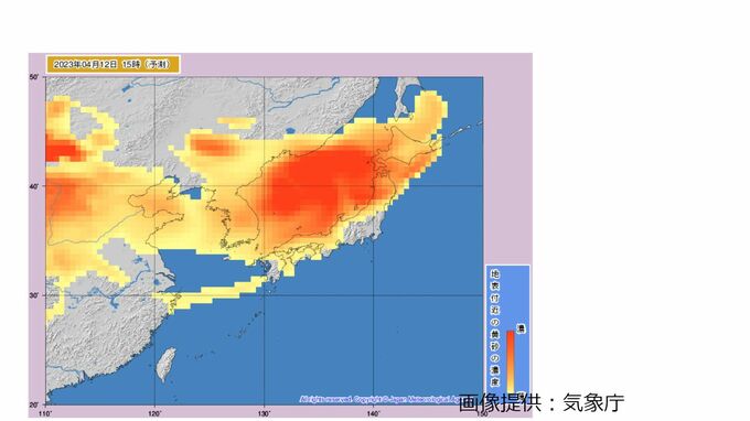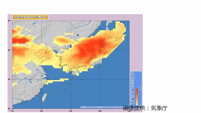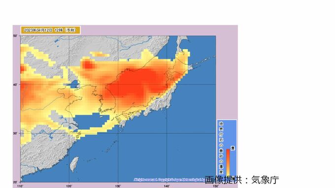 これは、雪解け後の大陸の黄土地帯で舞い上がった土や砂が上空の風に運ばれてくるためで、きのう(11日)午前9時現在で、中国の華北・東北区では視界が2キロ未満となっているところもあったということです。