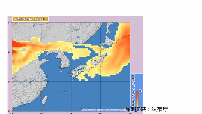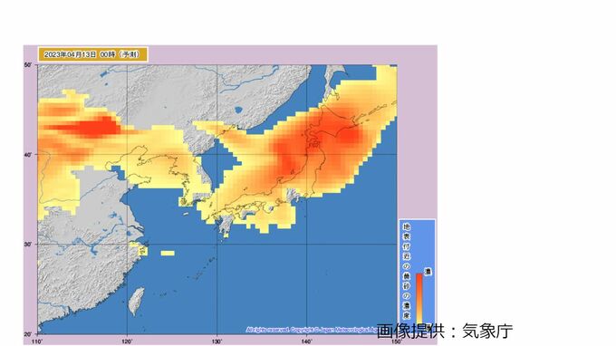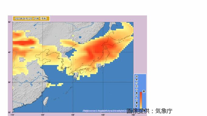 気象台によりますと、黄砂は西日本にはきょう(12日)午前からあす(13日)昼ごろにかけて、東日本にはきょう昼ごろからあさって(14日)未明にかけて、広い範囲で飛来する見込みです。