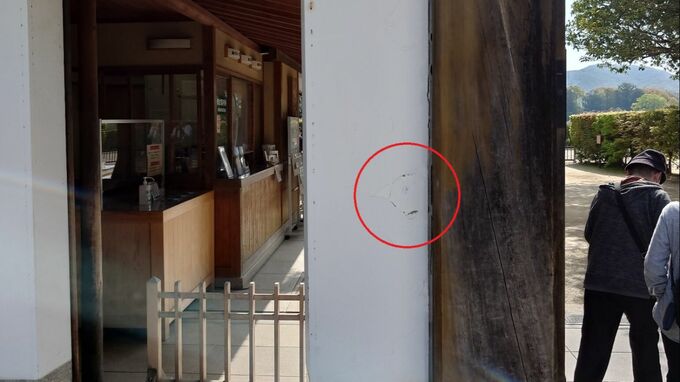 落書きが見つかったのは岡山市北区の「岡山後楽園」の正門横にある白壁です。きょう(11日)午前9時頃、職員が通りがかった際に違和感を覚え、壁をよく見ると、ボールペンで書かれたものとみられる縦12センチ、横10センチほどの落書きが見つかりました。昨日の閉園時には異常はなかったということです。