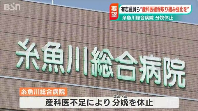 そのために市外へ長時間の移動を強いられることや、大雪の場合には交通網が寸断されることに市民からは強い不安の声が上がっているとして、糸魚川総合病院の分娩継続に向けて医師確保の取り組みを強化するように要望しています。