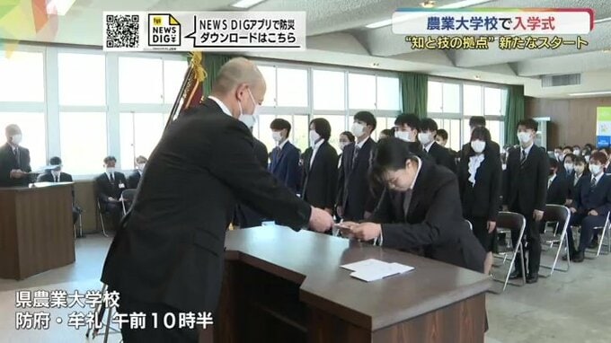 農業試験場との統合で新たなスタートを切った、防府市の農業大学校で入学式がありました。農業大学校 畜産学科 濱田夏凜さん「山口県の農業を担う人材になれるよう、充実した学校生活を送ることをここに誓います…