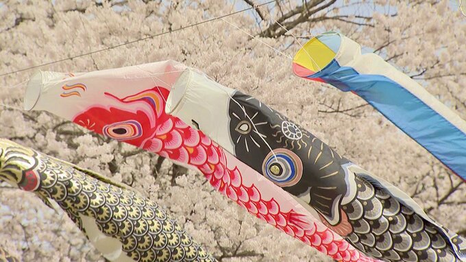春の名物が今年も登場です。山形市の高瀬地区では、優雅に空を泳ぐこいのぼりと見ごろを迎えた桜の共演が、訪れた人の目を楽しませています。山形市の高瀬地区。村山高瀬川に掲げられているのは、沢山のこいのぼり…