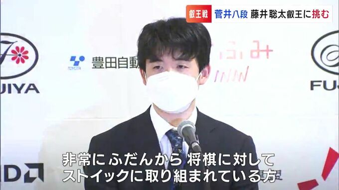 午前9時、注目の第1局が始まりました。先手番となったのが藤井聡太叡王、将棋の8大タイトルのうち竜王や王位など6つを保持する、まさに現役最強の棋士です。そしてその藤井叡王に挑むのが後手番の岡山市在住、菅井竜也八段です。その菅井八段、昨夜の会見では…。