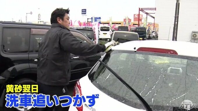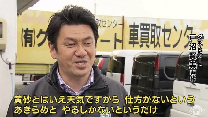 ※グランドオート・戸沼賢美専務「黄砂とはいえ天気ですから、仕方がないというあきらめと、やるしかないというだけ。(車は)ずっと汚いままにもしておけないので少しずつ地道な作業にはなりますけどね」