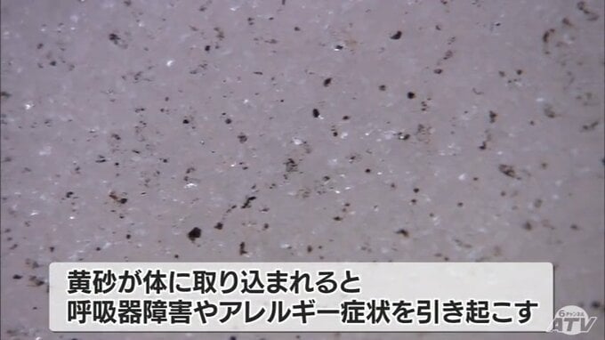 こうした日常生活への影響のほか健康被害も懸念されます。日本気象協会によりますと、黄砂の大きさは4マイクロメートルがほとんどで花粉症を引き起こすスギ花粉の7分の1と肉眼で確認するのは難しく、吸い込んだり触ったりして体に取り込まれると、呼吸器の障害やアレルギー症状を引き起こすとされています。