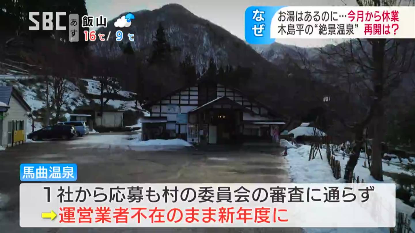 (木島平村産業課・湯本課長)「今まで施設は第三セクターが運営していたが、譲渡して馬曲温泉を運営する業者がいない状況」