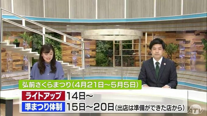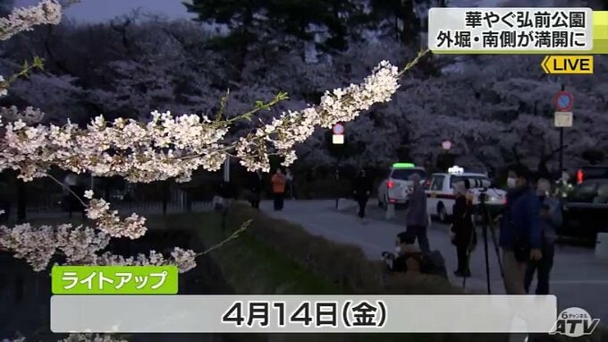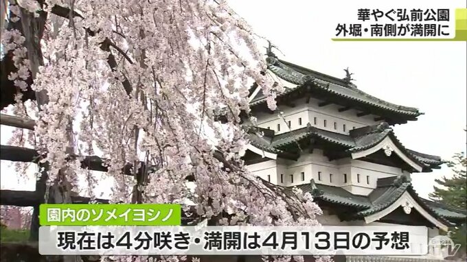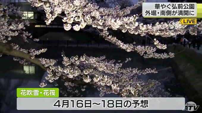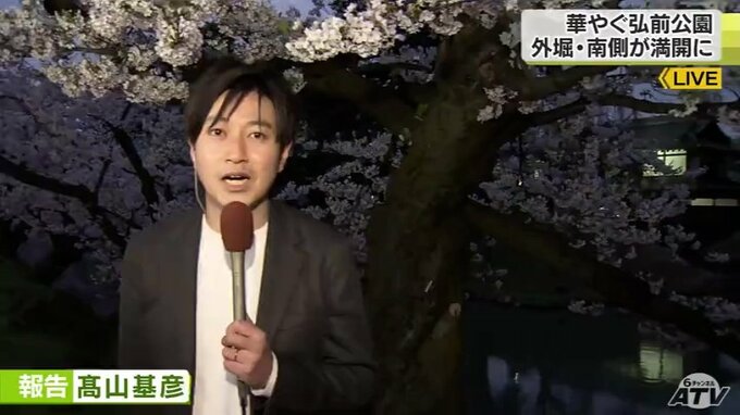 弘前公園外堀南側のソメイヨシノの様子を中継でお伝えしました。