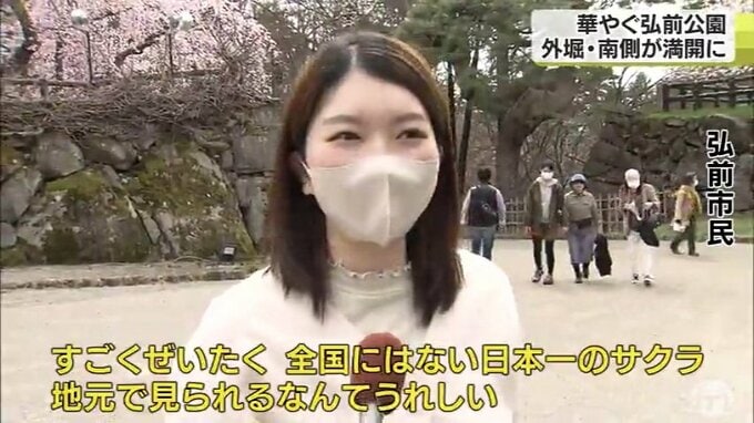 ※弘前市民は「すごい贅沢ですよね。全国にはない日本一の桜、地元で見れるなんて本当に嬉しいです。」